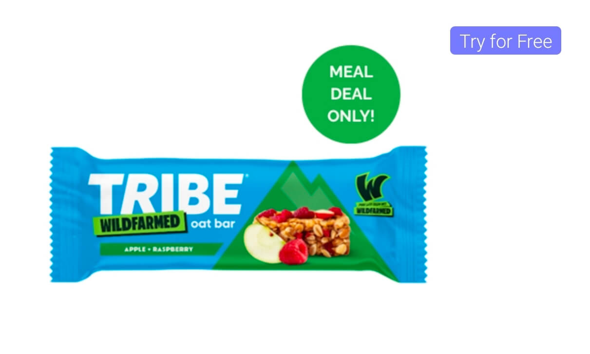 You can currently get Β£1.50 cashback on a Tribe Wildfarmed Flapjack, Apple & Raspberry 50g from Tesco when purchasing it as part of a meal deal.